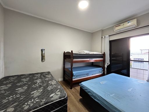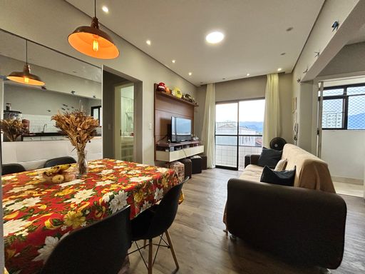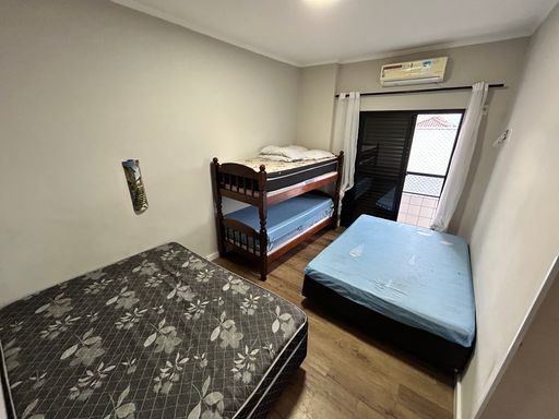 Apartamento semi mobiliado no bairro Ocian a 400 metros da praia. Com 47 m2 o apartamento fica localizado no 1º andar em prédio com elevador com sala pra 2 ambientes, sacada com vista livre, cozinha integrada com parede pintada com tinta lousa, área de serviço individualizada, banheiro social com ventilação natural e box, dormitório com ar condicionado e sacada e 1 vaga de garagem.