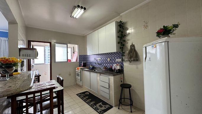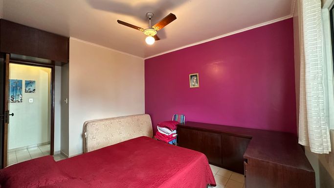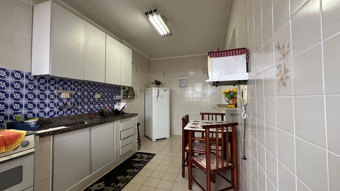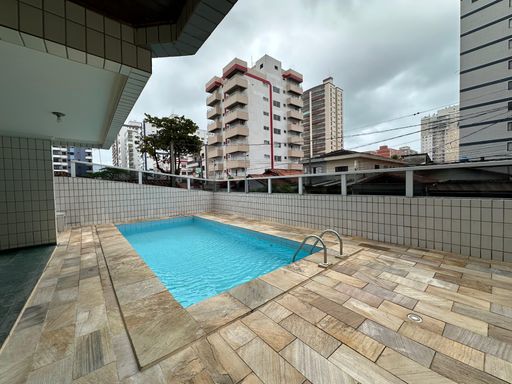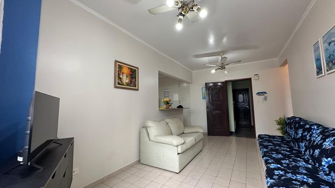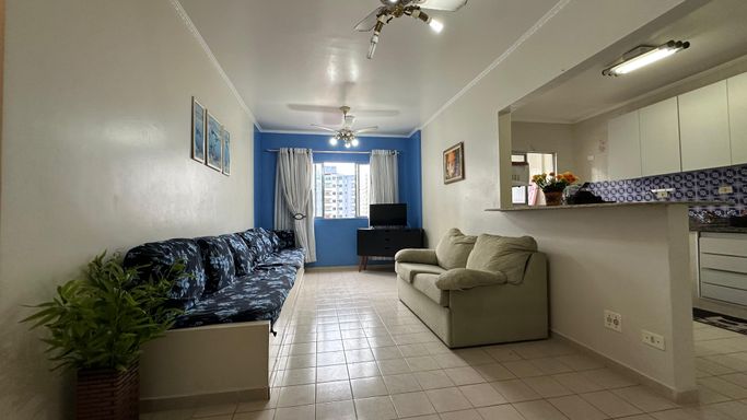 Apartamento bem localizado em Praia Grande com 01 dormitório amplo com uma pequena vista para o mar, sala grande, cozinha americana, área de serviços, banheiro social e uma vaga de garagem.
