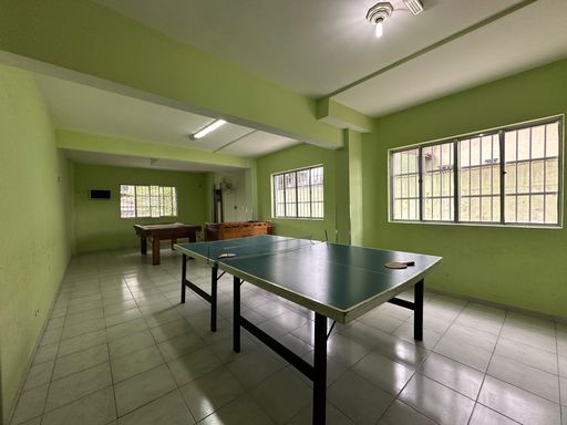 Prédio com elevador, piscina, salão de jogos, e um espaço goumet.