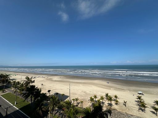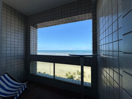 Apartamento em Praia Grande no Real em frente ao mar, com 02 dormitórios amplo sendo uma suíte com uma vista panorâmica do mar, sala grande dois ambientes com sacada e vista linda da Praia, cozinha, área de serviços, banheiro social e uma vaga de garagem.