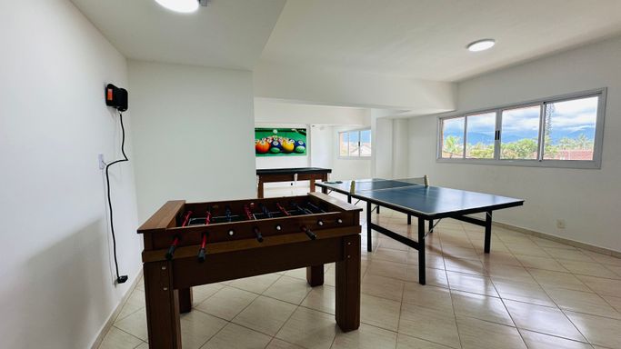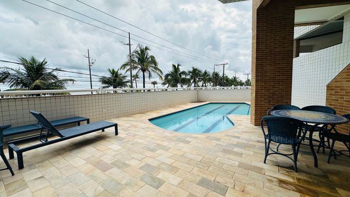 Prédio frente mar, com piscina, sauna salão de festa e Jogos.