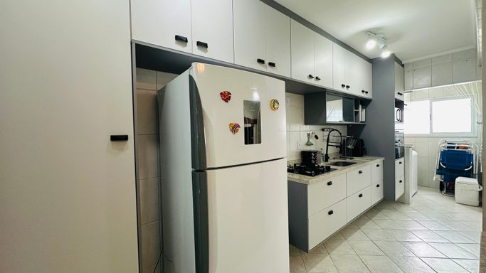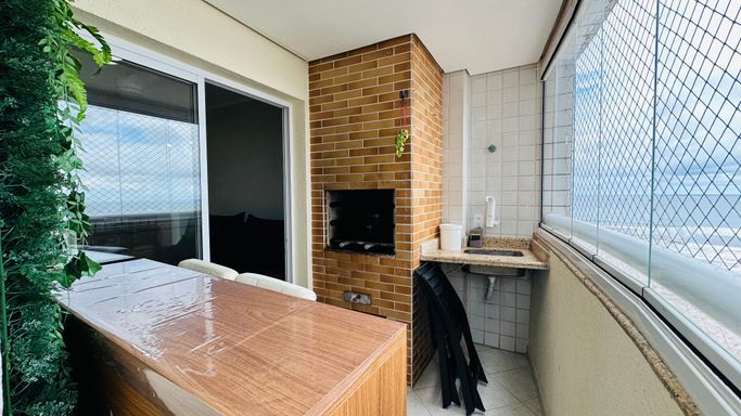 Apartamento em Praia Grande no Jardim Real com 02 dormitórios amplos sendo uma suíte com vista mar lateral, sala grande dois ambientes com vista, sacada gourmet envidraçada e vista mar, cozinha planejada, banheiro social, área de serviços, 01 vaga de garagem.