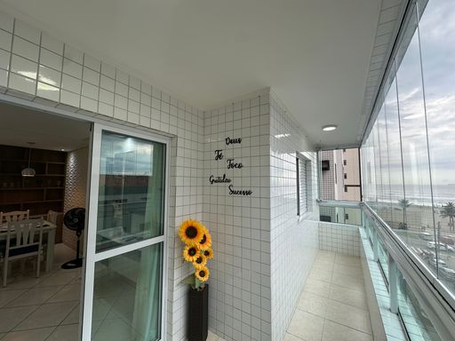 O imóvel conta com 2 dormitórios, sendo 1 semi-suíte, sala bem distribuída, cozinha funcional, lavabo e duas sacadas, proporcionando ótima ventilação e iluminação natural. Destaque especial para a vista para o mar, que torna o ambiente ainda mais exclusivo.