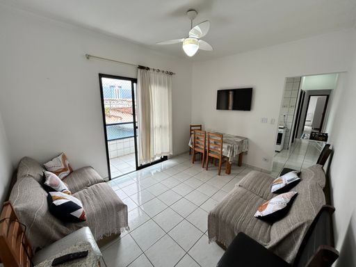 Apartamento com 2 dormitórios a 400 metros da praia no Caiçara. Estabelecido no 2º andar com 67 m2 de área útil sendo sala pra 2 ambientes com sacada vista livre, cozinha com armários, área de serviço, banheiro social, 2 dormitórios sendo 1 deles com sacada de frente pra rua e 1 vaga de garagem.