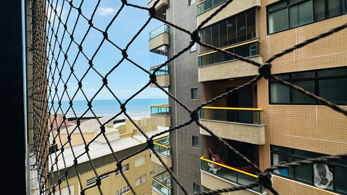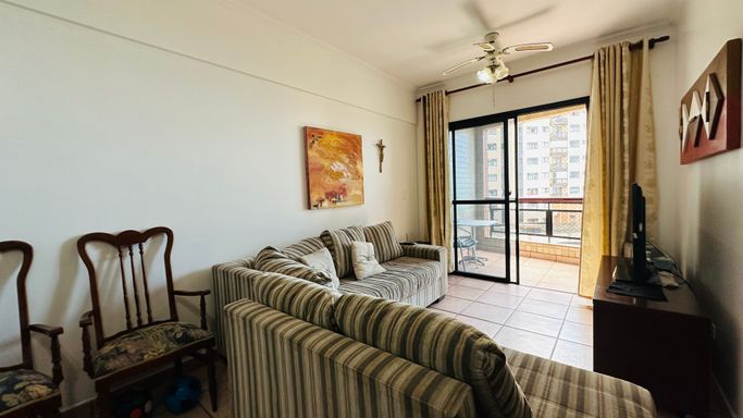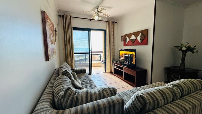Apartamento em Praia Grande na Vila Caiçara, com 02 dormitórios sendo uma suíte com vista mar, sala ampla dois ambientes com sacada e uma vista linda do mar, cozinha, área de serviços e banheiro social, uma vaga de garagem coberta, salão de festa, jogos, solário com piscina e um espaço gourmet.