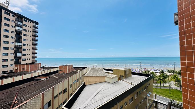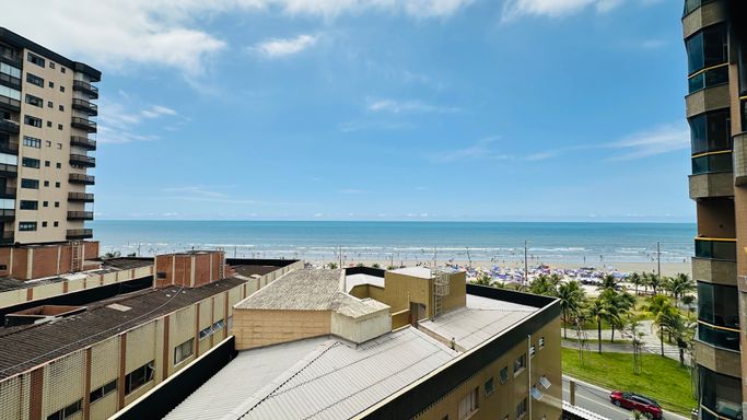 Apartamento em Praia Grande na Vila Caiçara com vista mar sendo 02 dormitórios.