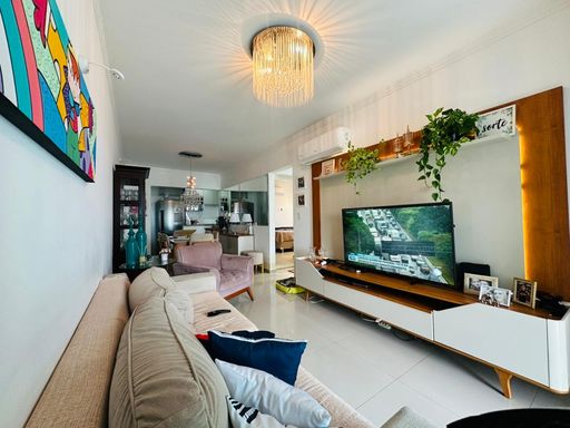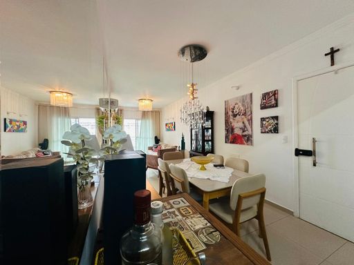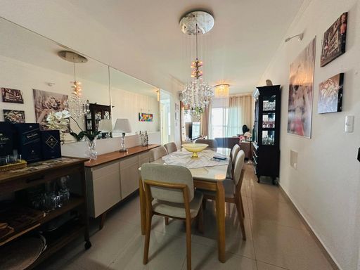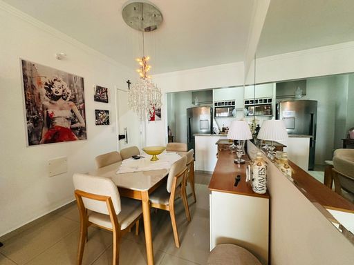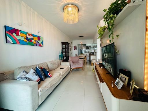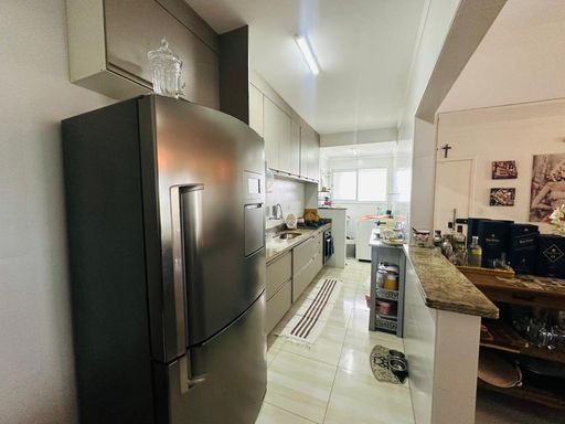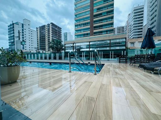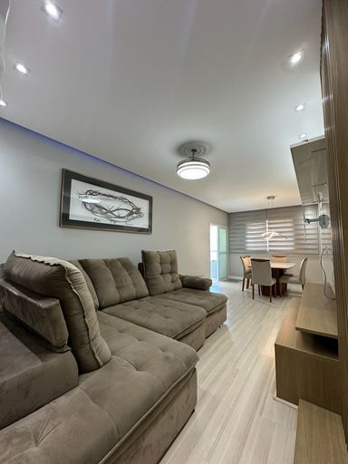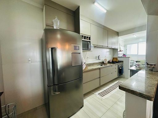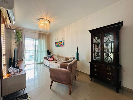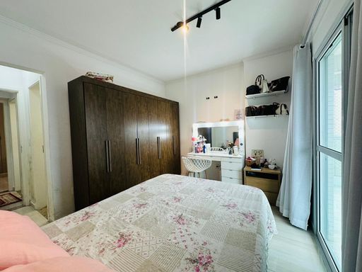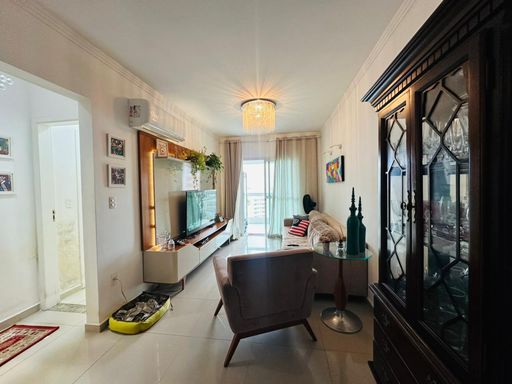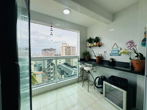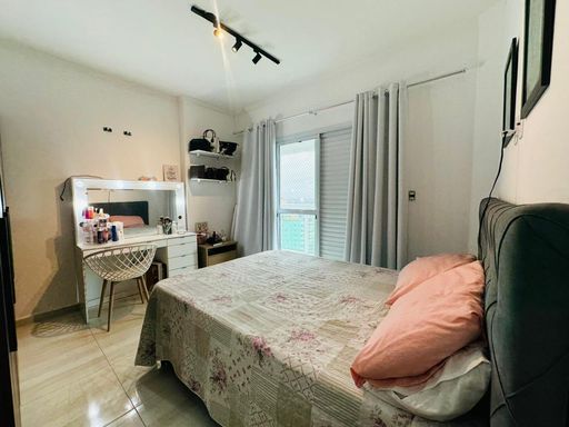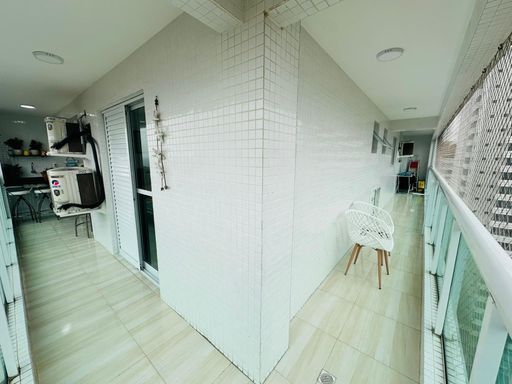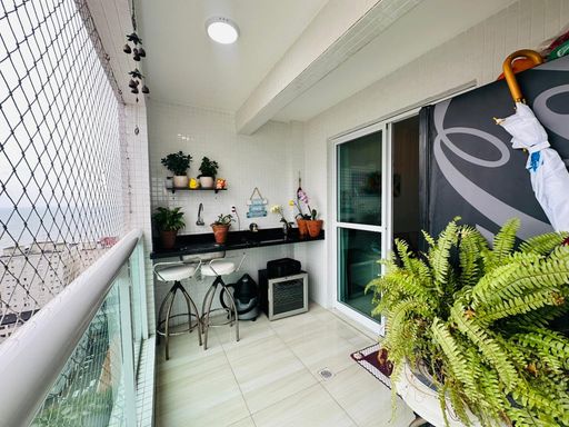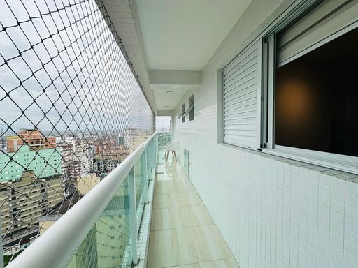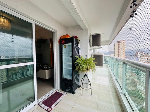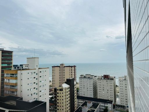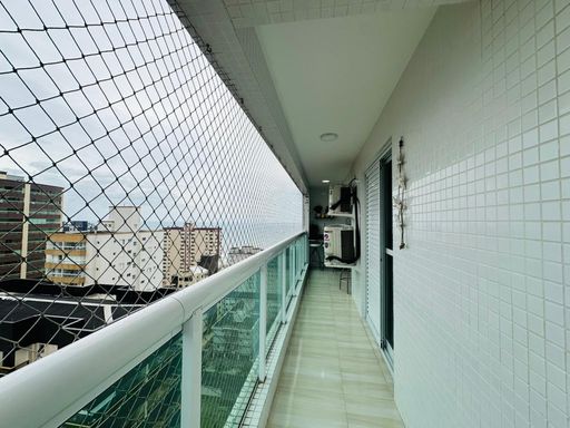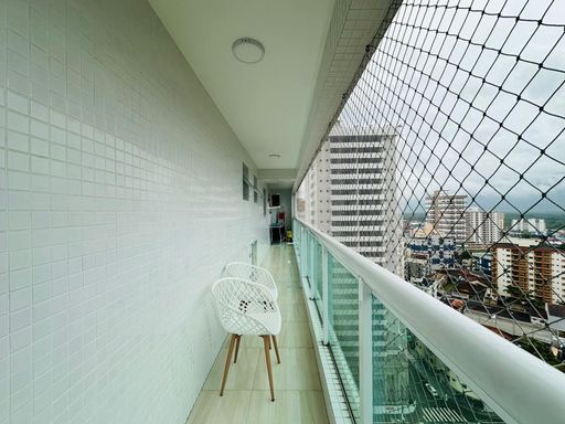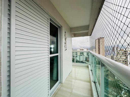 Apartamento em Praia Grande na Vila Caiçara, com 02 dormitórios sendo uma suíte com sacada e vista mar, sala grande dois ambientes com sacada, cozinha americana, área de serviços, banheiro social, duas vagas de garagem.