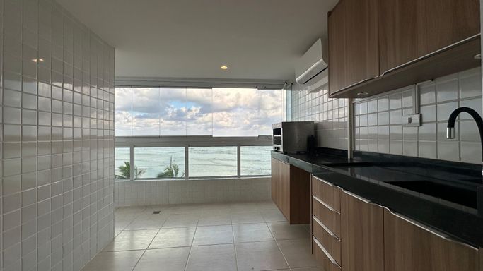 Oportunidade de apartamento frente mar no Balneário Florida, com 03 dormitórios sendo uma suíte e sacada vista mar, com sala 02 ambientes e sacada gourmet e vista livre para o mar, cozinha americana planejada e mobiliada, banheiro social.