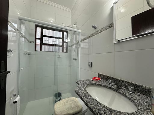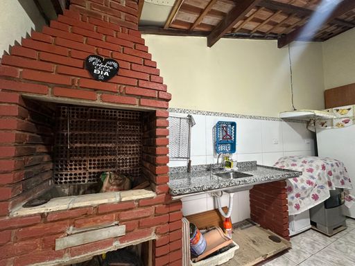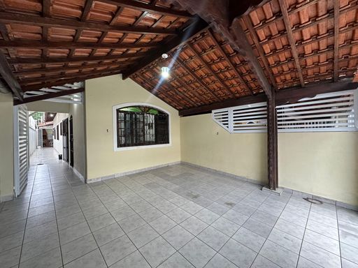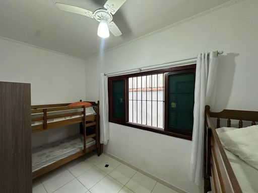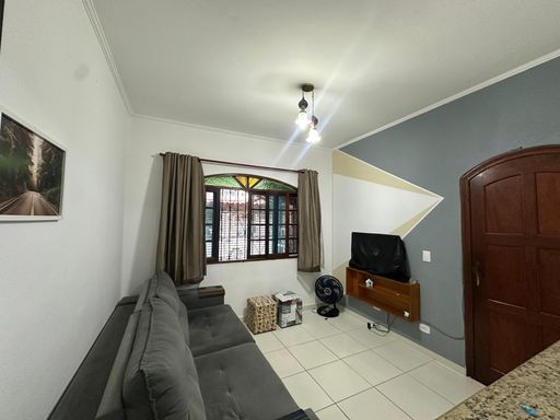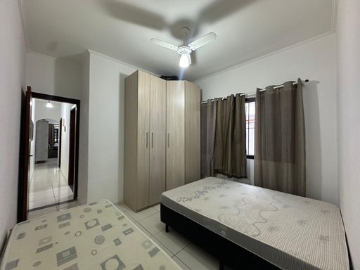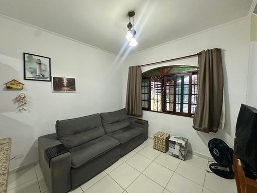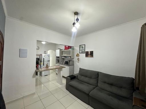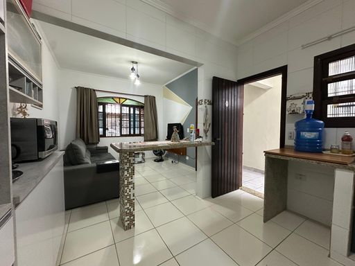 Casa geminada em praia Grande, com 02 dormitórios sendo uma suíte ampla, sala, cozinha americana, wc social, área de serviços, quintal com espaço gourmet coberto, 02 vagas de garagem, casa ficara mobiliada apenas á 350 metros da Praia.