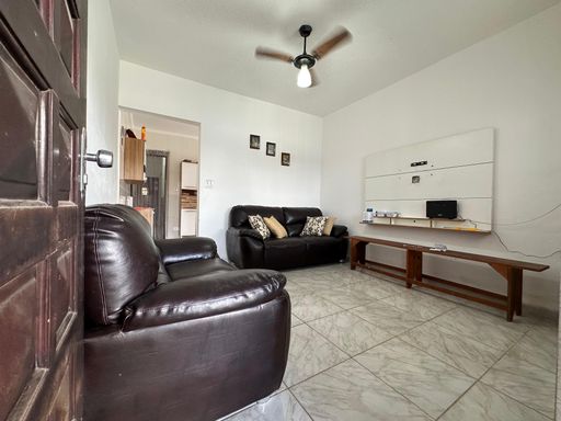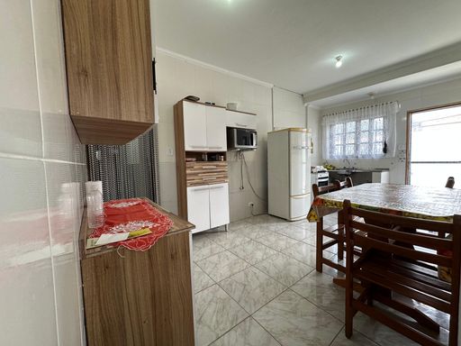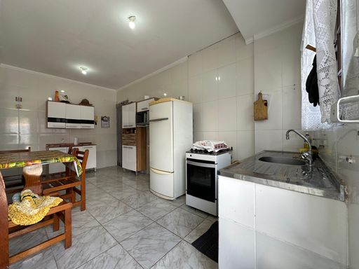 Casa semi-isolada de esquina em Praia Grande, com 02 dormitórios amplos, sala, cozinha espaçosa, 02 banheiros sociais, área de serviços, quintal com espaço gourmet e 02 vagas de garagem cobertas.