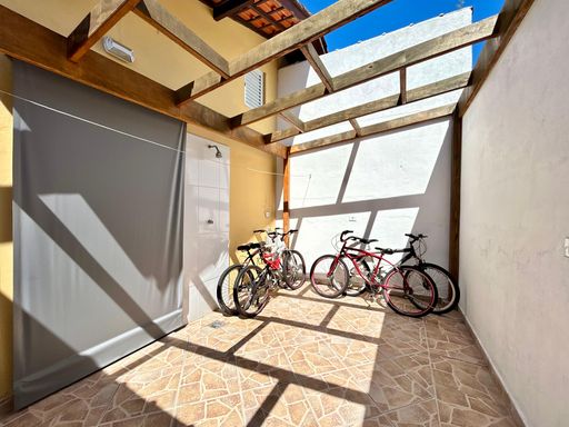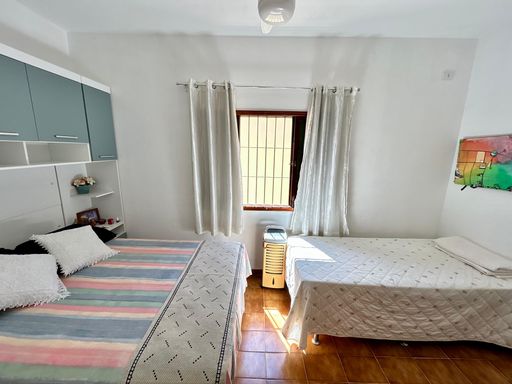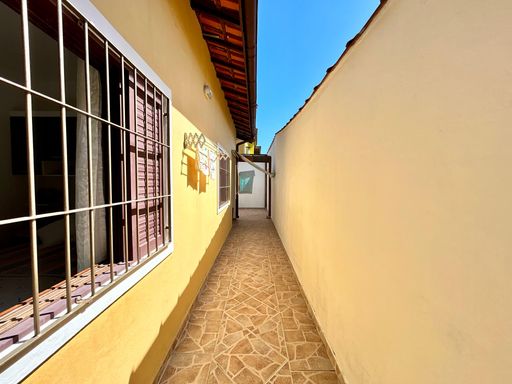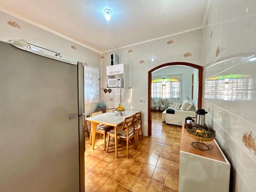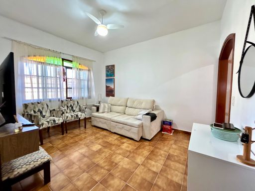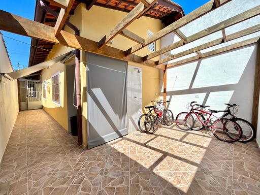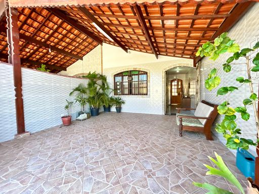 Casa em Praia Grande, com 02 dormitórios amplos sendo uma suíte, sala, cozinha dentro e fora de casa, banheiro social, espaço coberto nos fundos, área de serviços, e 02 vagas de garagens.