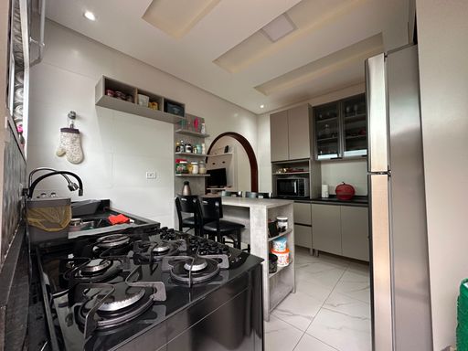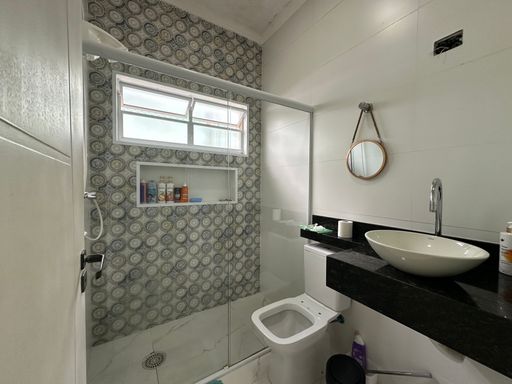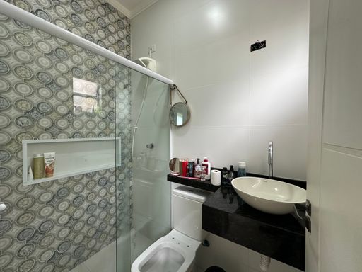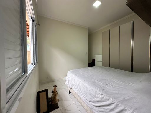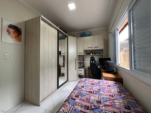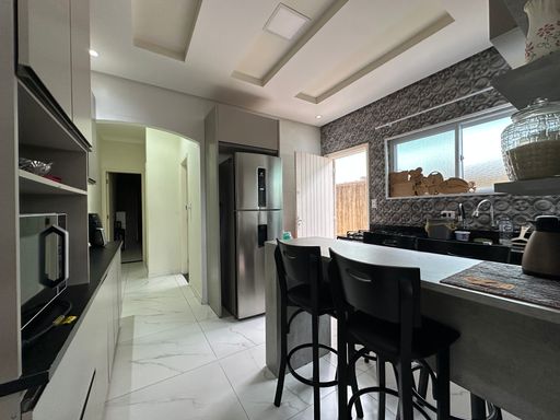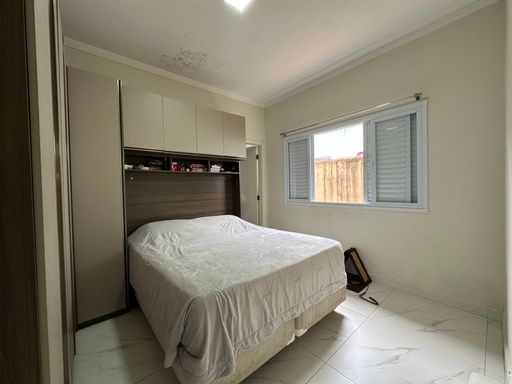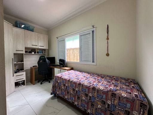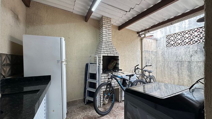 Casa geminada em Praia Grande, no Jardim Real com 02 dormitórios, sendo uma suíte ampla, sala grande, cozinha planejada, banheiro social área de serviços nos fundos, quintal com espaço gourmet e 02 vagas de garagem cobertas.