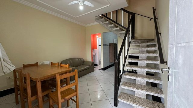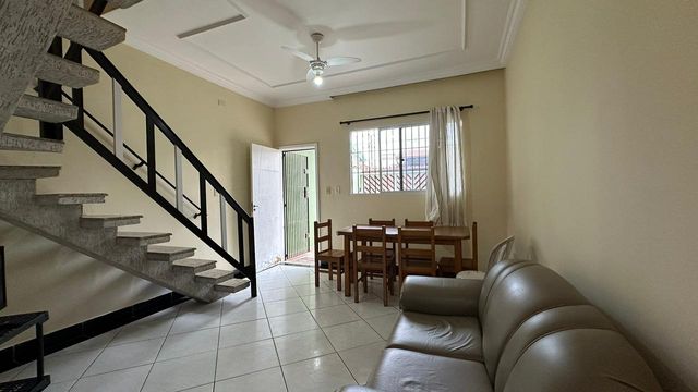 Sobrado em Praia Grande no Caiçara, com 02 dormitórios, sendo um com sacada e vista livre, sala ampla, cozinha, área de serviços, quintalzinho com churrasqueira, dois banheiros sociais, uma vaga de garagem.